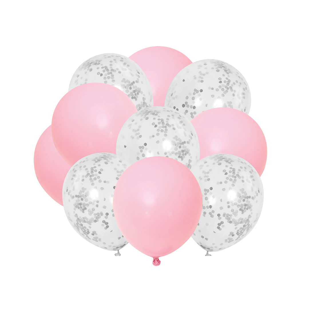 10-Pieces Standard Latex Balloons & Confetti Balloons Set - Pink(Deflated)