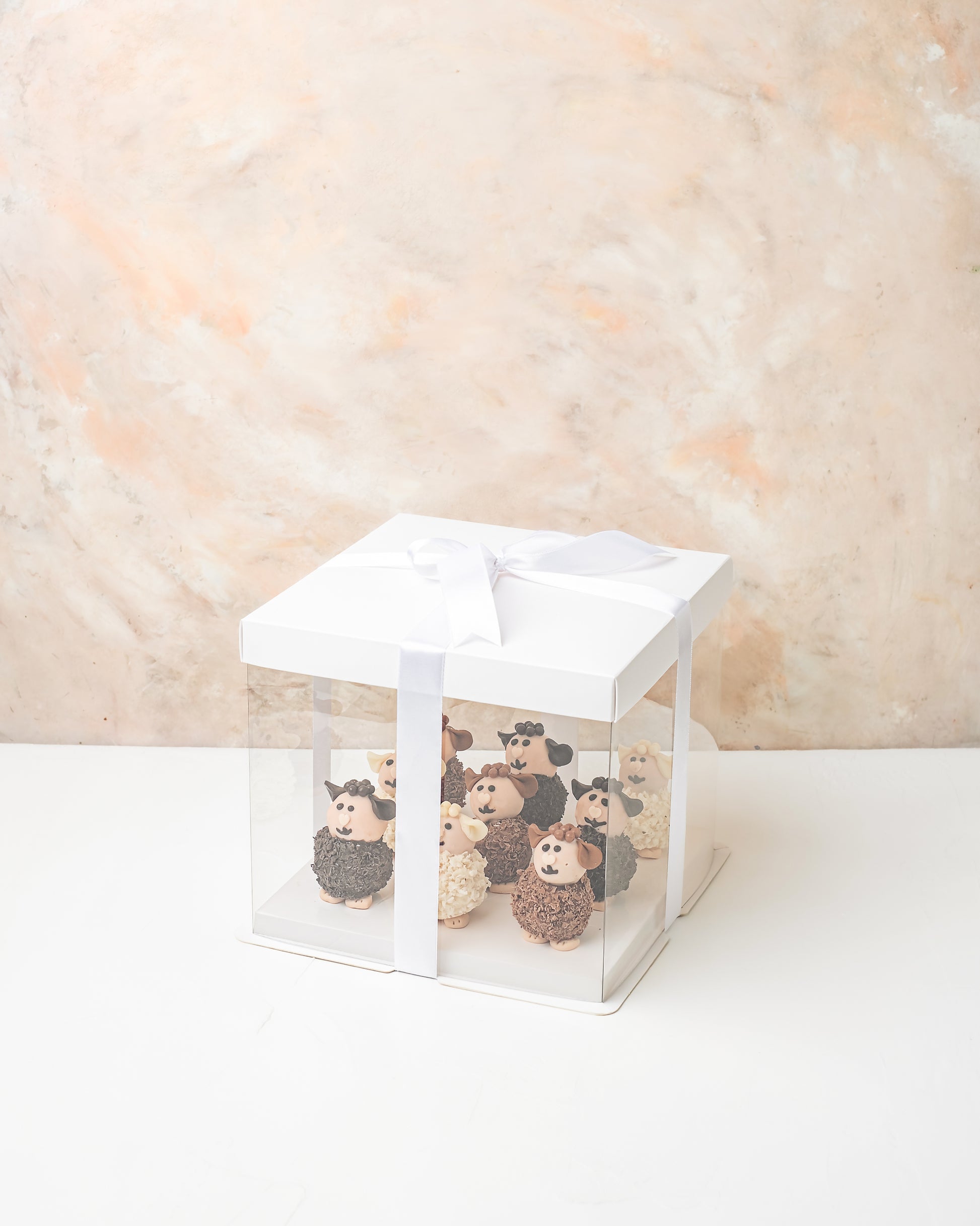 Your Gift Contains: • 9x Sheep truffles and cake pops assortment • Flavors: Chocolate/Vanilla/Brownie/Red Velvet • Box Size: 20x20x19cm Handling and Storage • Keep away from direct heat and sunlight • Best stored between 12-18 °C • NOT Suitable for vegetarians • Not suitable for those allergic to seeds, nuts, dairy and eggs CONTAINS NUTS AND NUTS BASED PRODUCTS |