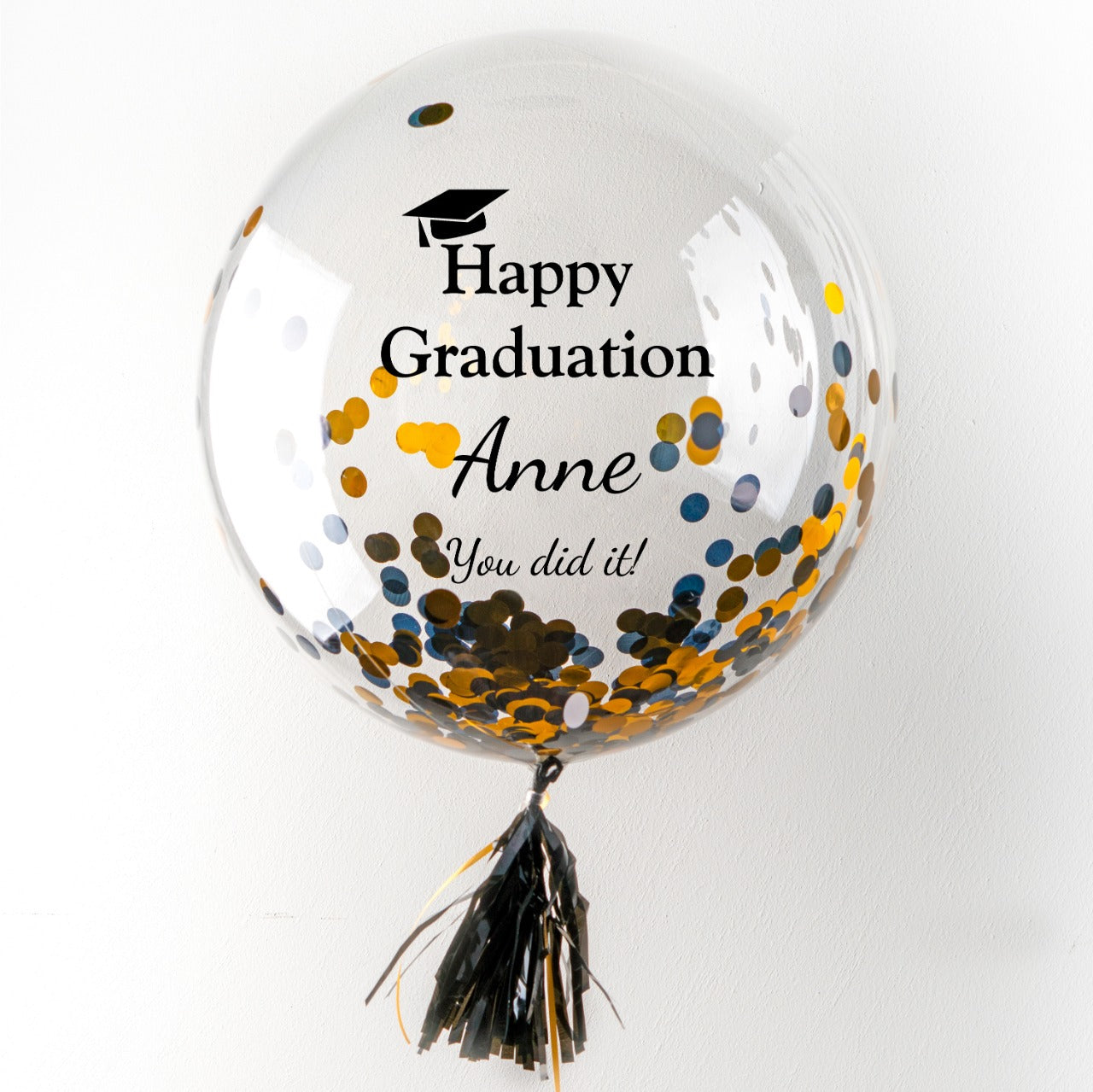 Wish someone a Happy Graduation on their big achievement with this wonderful Happy Graduation Confetti Orb Ballon! Fully customizable with your own message, make someones day with this Balloon.