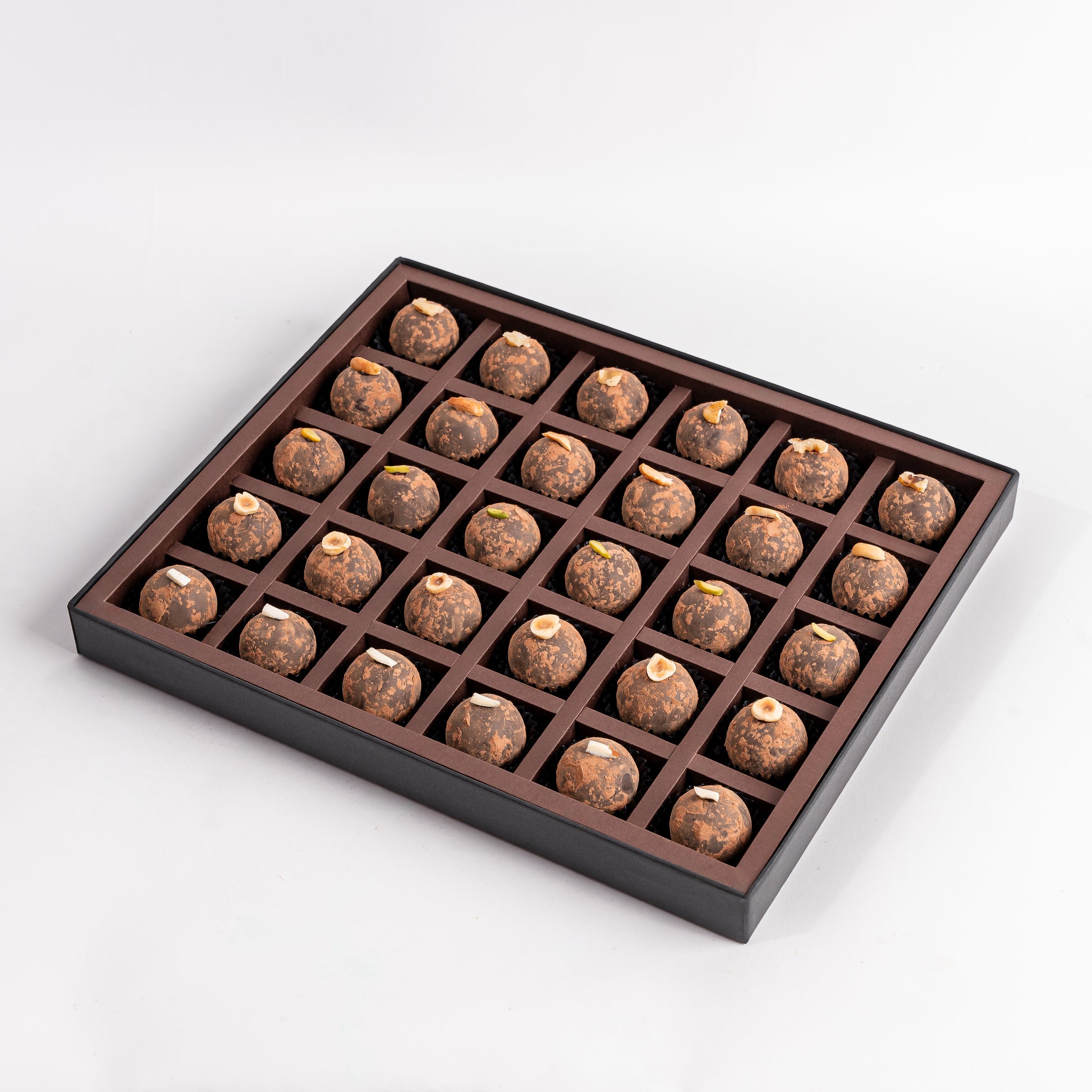 This refined assortment features thirty handcrafted energy bites, made exclusively from naturally sweet dates with no added sugar. Finished with peanut, pistachio, walnut, almond, and classic date variations, each piece offers depth, texture, and balance—celebrating wellness without compromise.