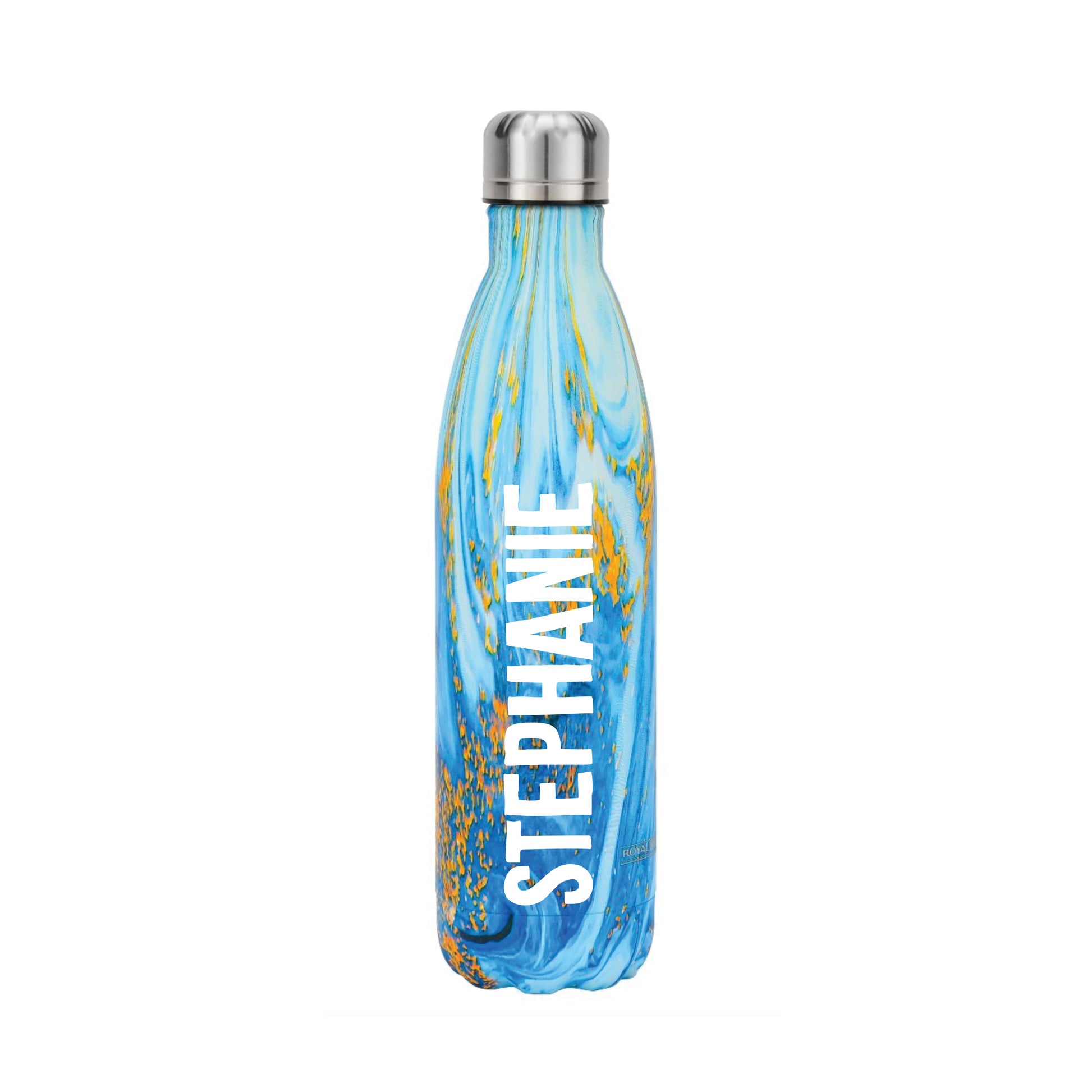Enjoy personalised hydration on-the-go with a stainless steel reusable water bottle