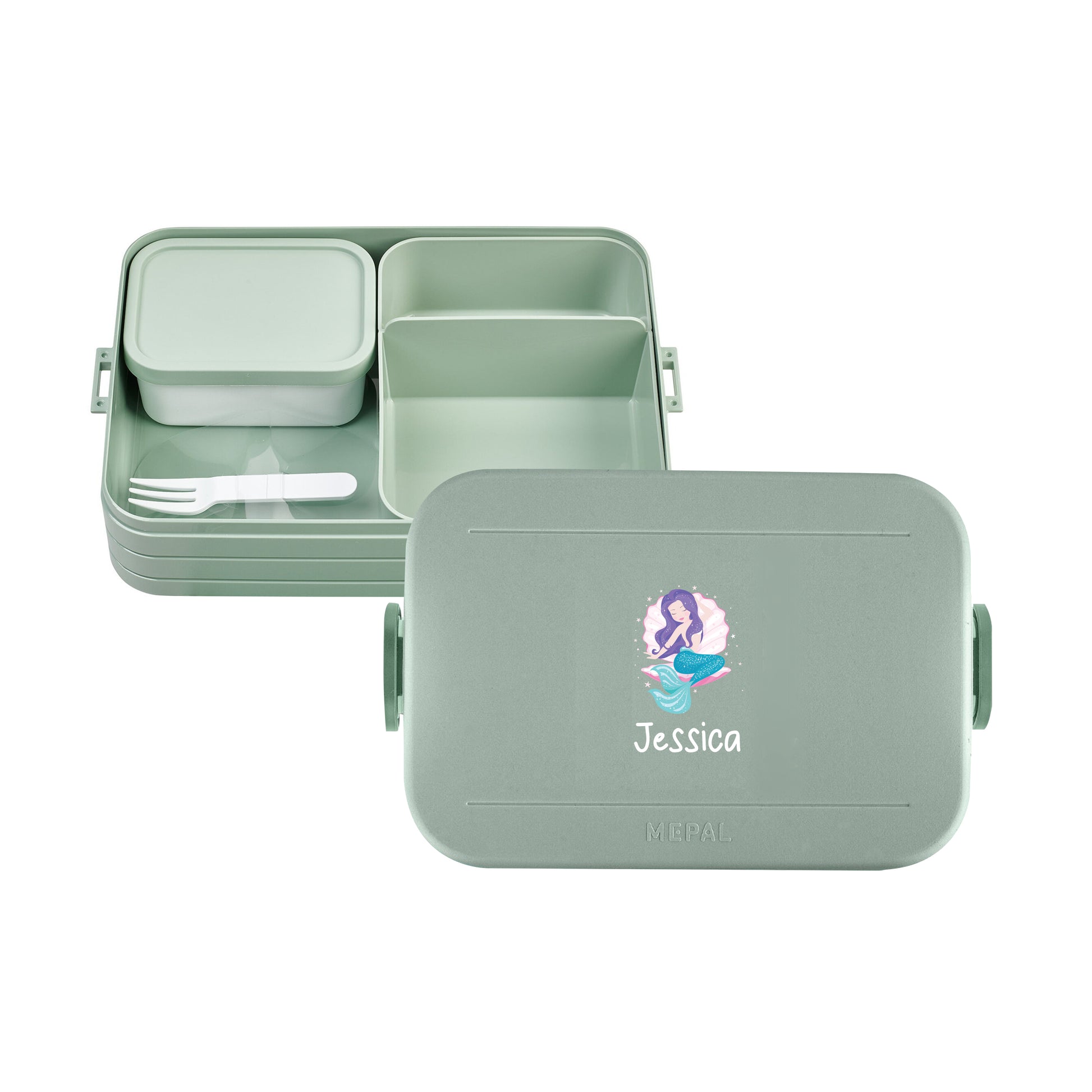 Large Personalised Mermaid Design Lunch Box- Nordic sage