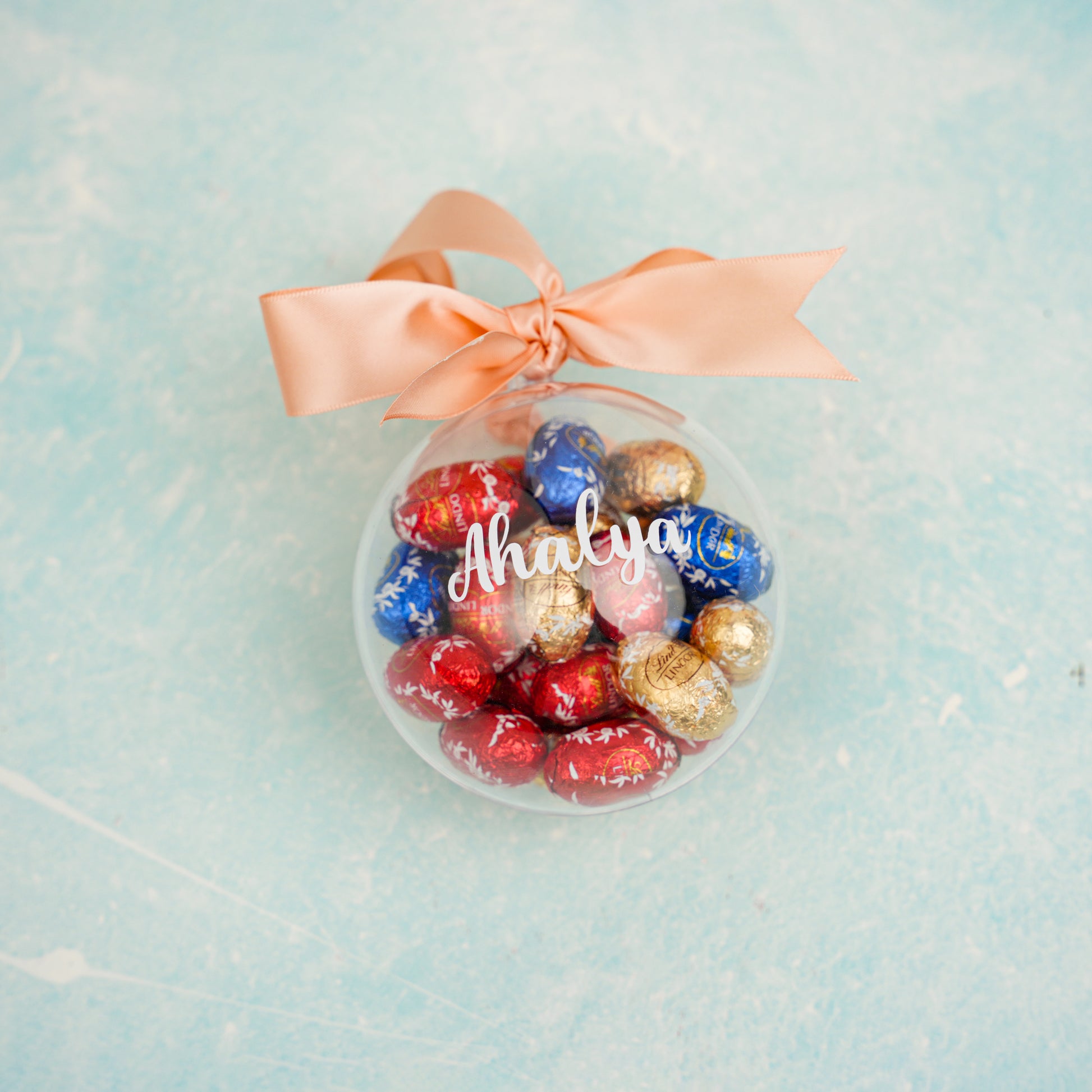 Personalised Bauble with Assorted Mini Chocolate Eggs inside