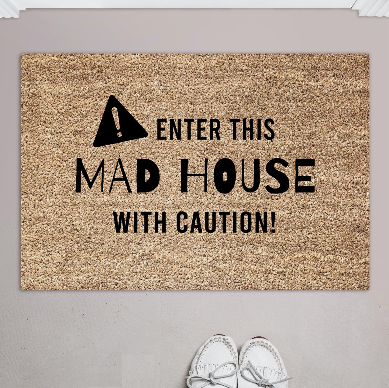 Caution Mad House Doormat