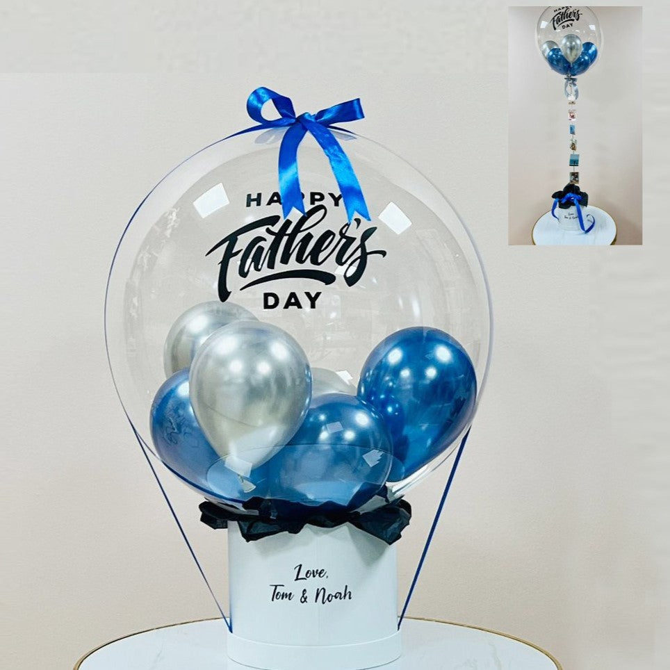 Show Dad how loved he is with this Photo reveal bubble balloon.. Bring him down memory lane by adding 6 Personal Photos of your choice. When Dad unties the ribbon at the top, the helium bubble balloon will fly up and reveal the hidden photos inside.