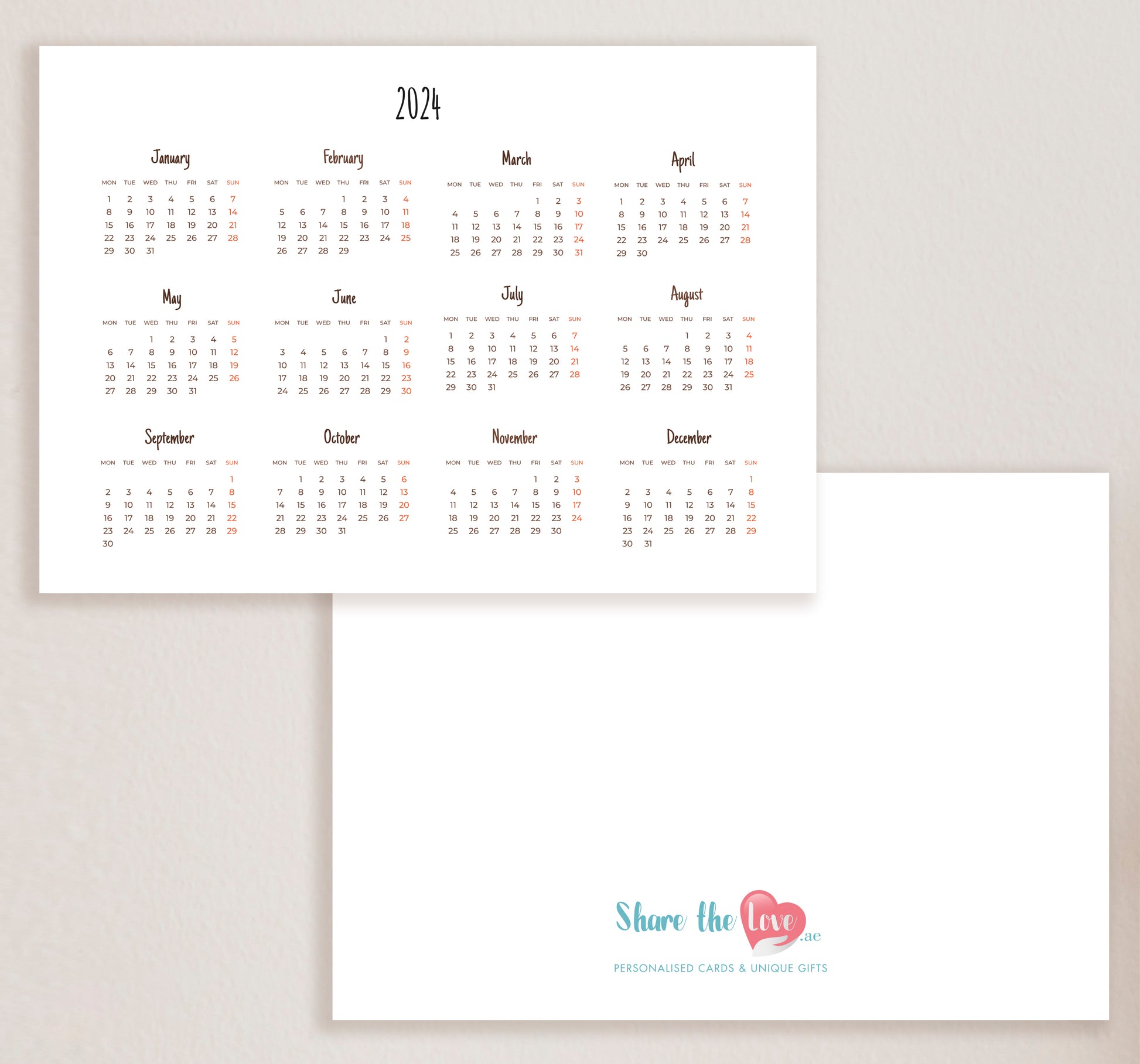 Our high-quality Desk Calendars are the perfect way to keep track of your families plans and adventures. They also make for lovely useful gifts for your family, friends, clients, or employees.