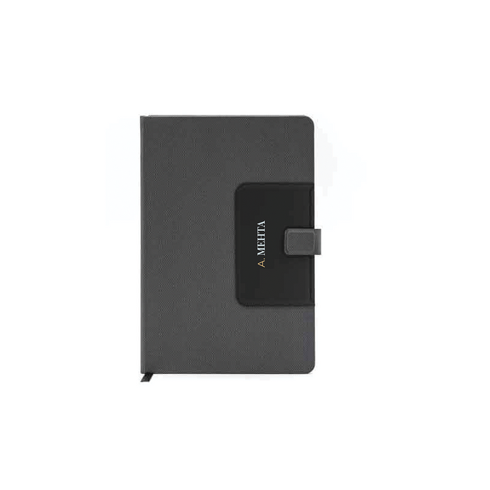 Manez is an A5 notebook organizer with in-built folding mini-workstation - truly an avant-garde modern office notebook. Includes an integrated business card holder, magnetic clasp with integrated pen loop. Contains 192 pages and a folding phone and pen stand. Opens flat due to excellent binding quality.