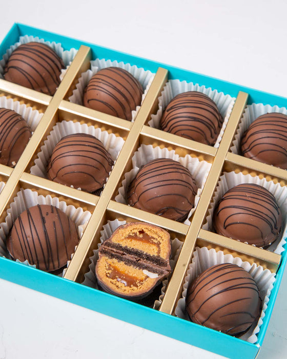 | Your Gift Contains: • 12 pieces Oreo Caramel bites approx. 350gms Box Size: LxBxH: 24x18.5x4cm HANDLING AND STORAGE Keep away from direct heat and sunlight. Best stored at 15-20° C Suitable for vegetarians Prepared in a facility where nuts are used. May contain traces of soy, dairy, and nuts. |