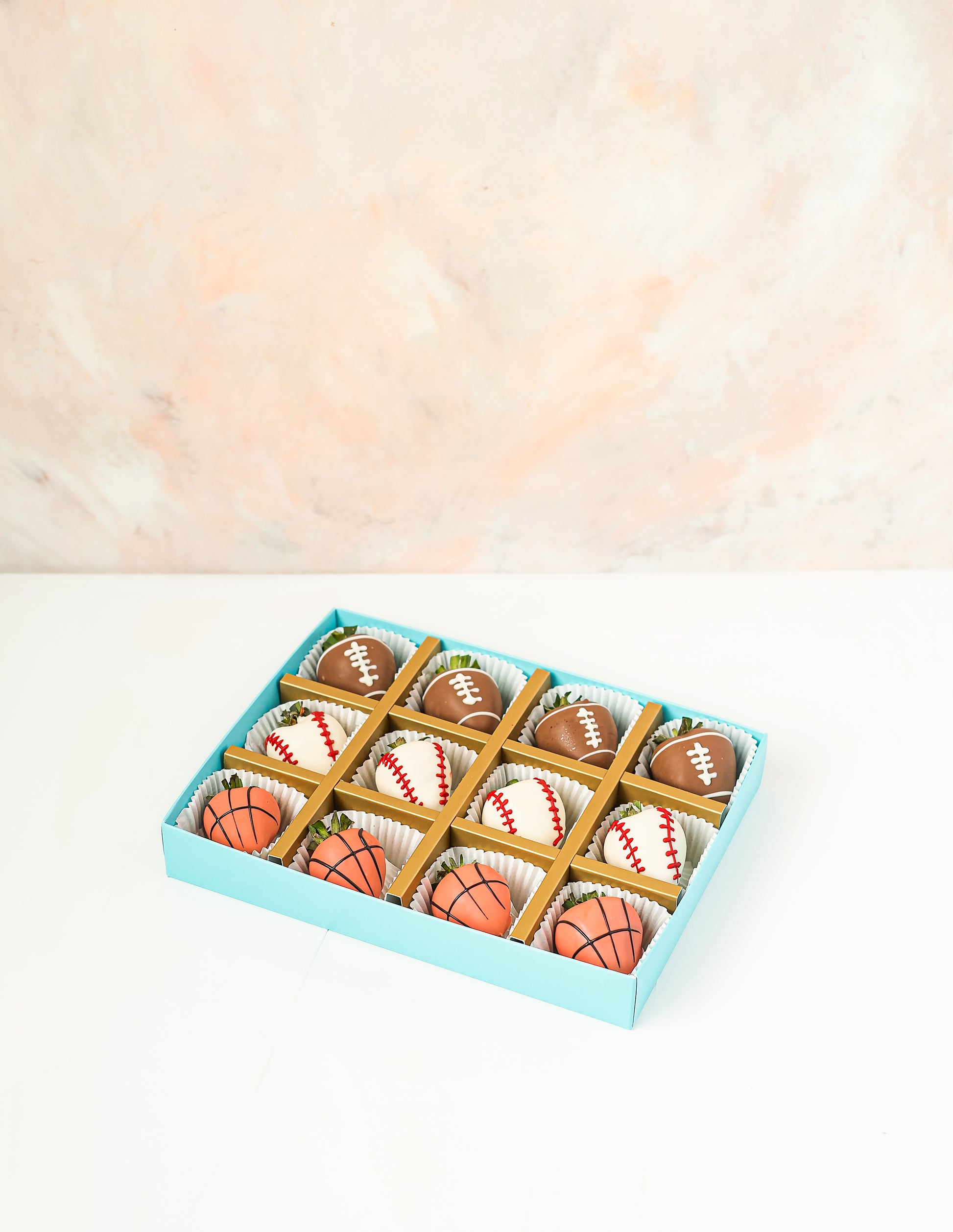 - 12 Chocolate covered strawberries in sports theme